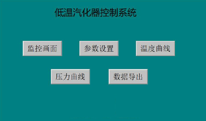 本系統(tǒng)控制軟件由初始畫(huà)面、監(jiān)控畫(huà)面、系統(tǒng)參數(shù)、溫度曲線、壓力曲線、數(shù)據(jù)導(dǎo)出六個(gè)模塊組成。